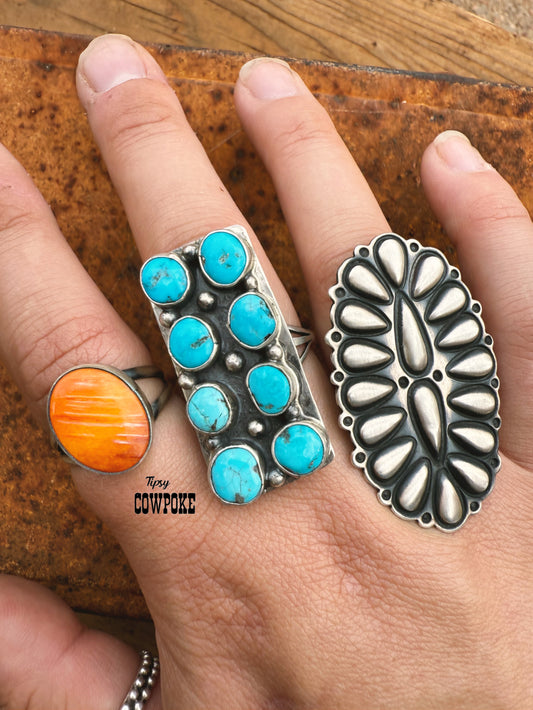 Kingman Turquoise Mini Cluster Zuni Size 5 & 4.5 Ring