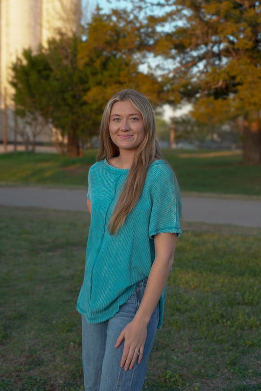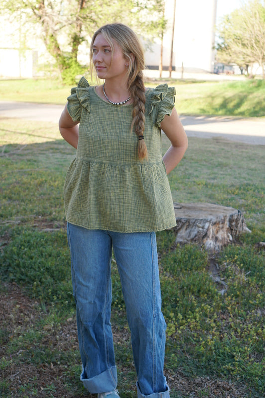 Lite Olive - Gauze Acid Washed Tiered Ruffle Peplum Top