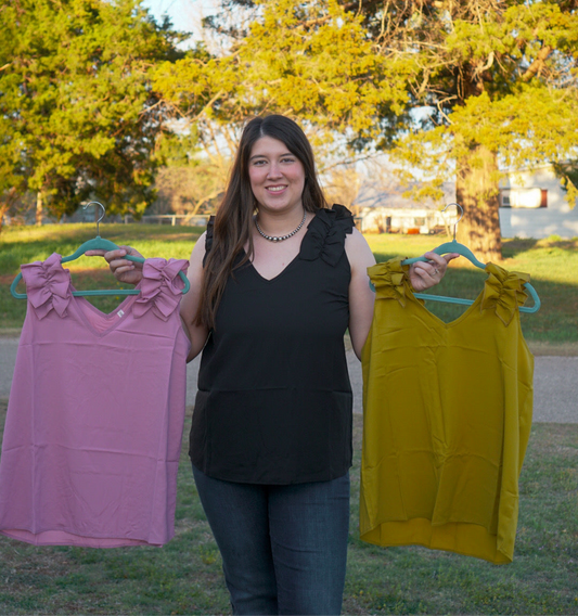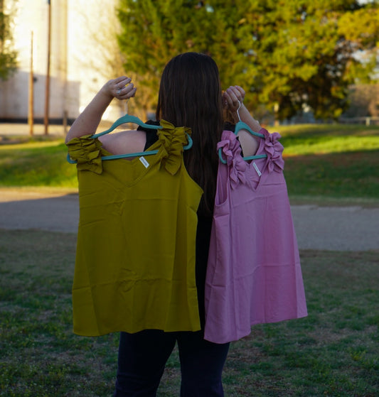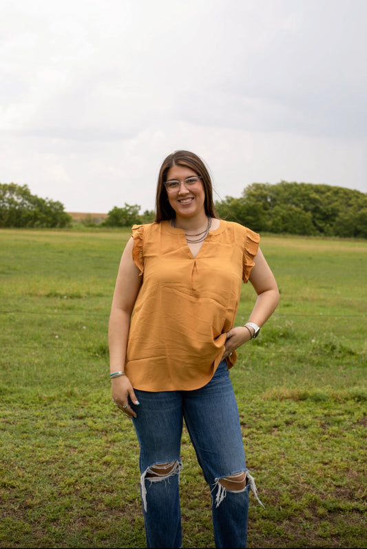 Olive Mustard - Ruffle Trim Sleeveless Top